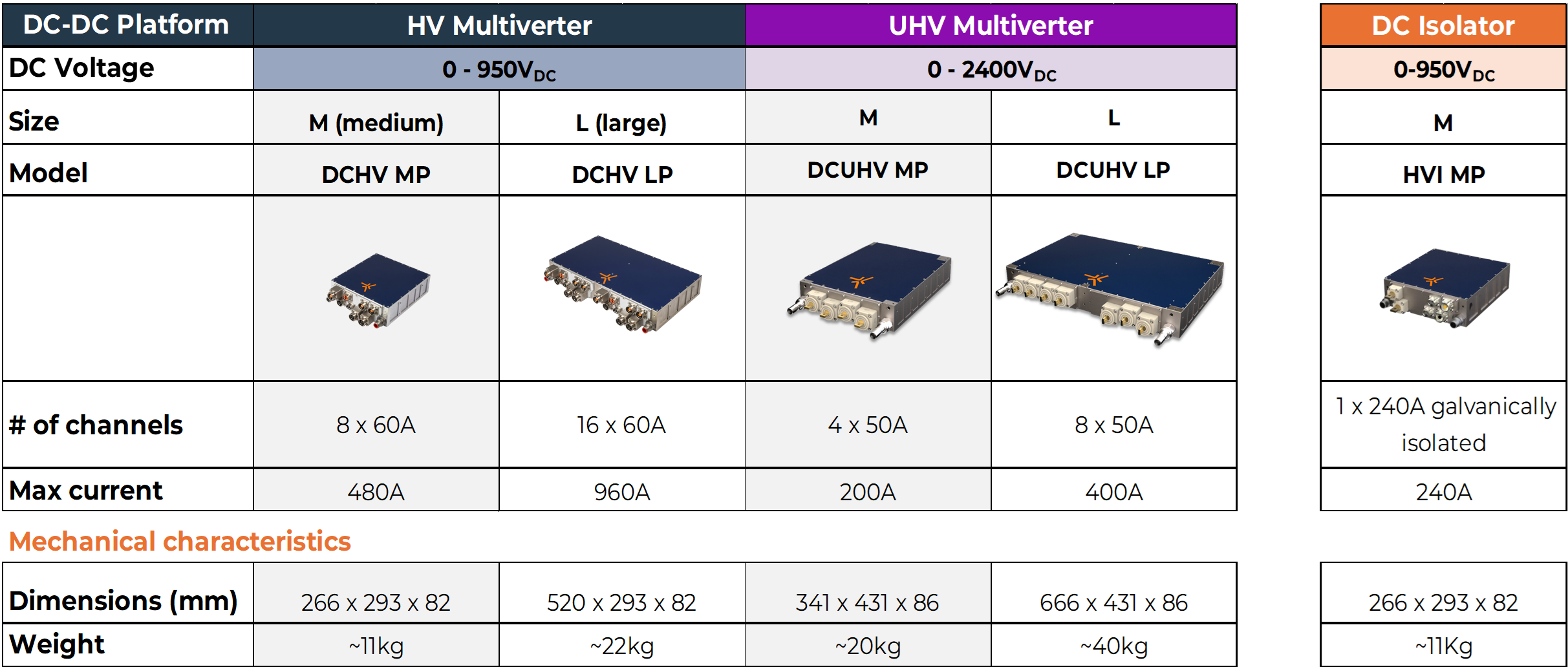 - Option ultra-haute tension, jusqu'à 2 400 Vdc