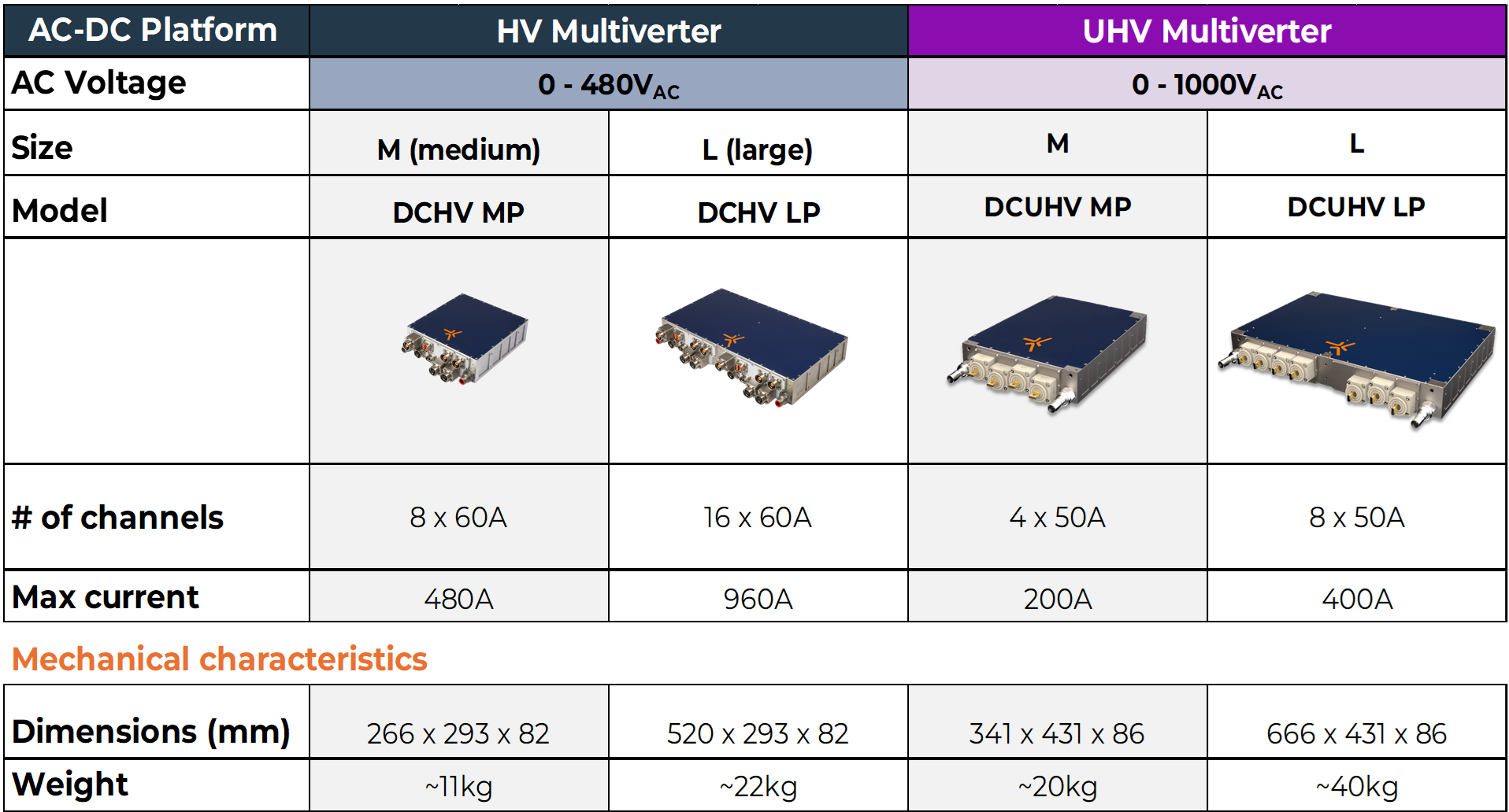 - Conception unique à haute fréquence (300 kHz) - Densité de puissance exceptionnelle de 20 kW/ kg et rendement maximal de 99 %. - Contrôle et surveillance à distance par CAN
