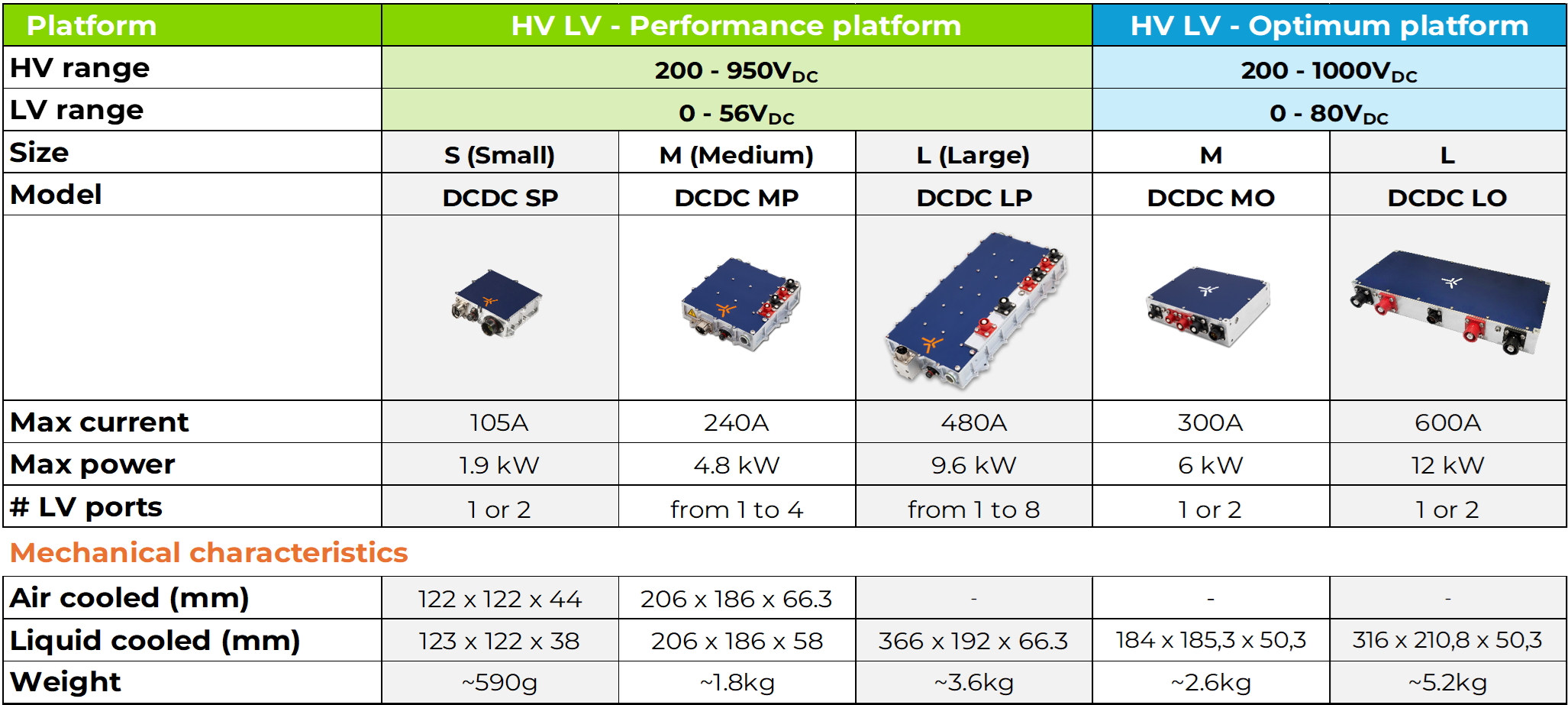 コンバータユニットには、300A/6kWを供給する中型ユニットのDCDC MOと、600A/12kWという驚異的な出力を提供する大型ユニットのDCDC LOの2種類があります。